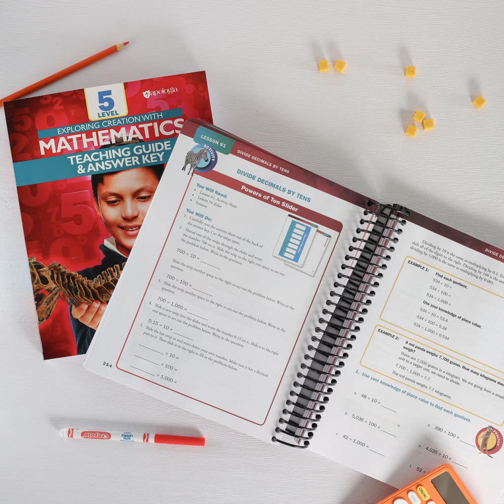 In Exploring Creation with Mathematics, Level 5, basic set students will learn about whole numbers, fractions, decimals, geometry and measurement, percents, and graphing. This hands-on, interactive math curriculum is filled with activities, practice problems, projects, and games that will help students comprehend lessons. Students will also see the connections between math, science, business, art, our world, and our universe. Most importantly, students will begin to see how the study of math points to our Creator.